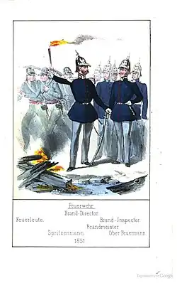 - ^ Wolfgang Hornung-Arnegg: Feuerwehrgeschichte. Kohlhammer, 4. Auflage. 1995, ISBN 3-17-013203-2, S. 61.