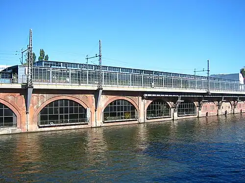 The Berlin Stadtbahn is the historic east-west elevated railway of Berlin. It runs from Ostbahnhof in the east to Charlottenburg in the west, connecting several of the most major sights of the German capital. The line is protected cultural heritage since 1995.[2] It is often defined more simply as the slightly longer route between Ostkreuz and Westkreuz, although this is not technically correct.
