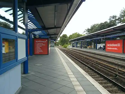 Treptower Park is a railway station in the Alt-Treptow locality of Berlin. It is served by the S-Bahn lines S41, S42, S8, S85 and S9 and so represents an important interchange point on the Berlin S-Bahn network. The station consists of two island platforms, enabling cross-platform interchange between lines running in the same direction. It is located next to the park of the same name.