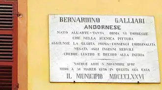 - Gian Antonio Galliari (1718-1783), third son of Giovanni, still-life painter of flowers. Born in Andorno, died in Milan.[5]