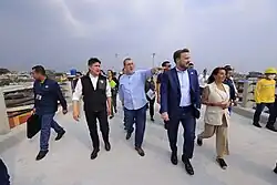 On 11 April, Arévalo together with the Minister of Infrastructure Jazmín de la Vega, the mayor of Guatemala City Ricardo Quiñónez, the United States ambassador to Guatemala Tobin Bradley and the Guatemala City councilor of Semilla Ninotchka Matute supervised the progress of the construction of the first phase of Metro Riel, one of the priorities of the Arévalo government.[69]