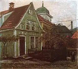 While most of his fellow students left Bergen upon finishing the painting school, many travelling to Copenhagen or even Paris, Tunold stayed in Bergen where he became part of the city's rural society. Olav Rusti, one of its leaders, had lived in a German monastery for eleven years, having previously belonged to the Norwegian artistic community in Munich. Upon returning to Norway, he committed himself to working for the Norwegian rural culture movement. His home, Urdi, served as the meeting place for like-minded people, including the writer Arne Garborg.[10] The movement was conservative and idealistic: it aimed to preserve the rural culture which was about to lose the battle against modernisation. During the first few years of the 20th century, Tunold became an almost fanatical champion for the cause.