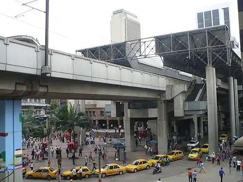 Parque Berrío Station, also known as Berrío Station, is the tenth station of the Medellín Metro and the tenth station on Line A from north to south.[1] Due to its central location in the city, it is the most popular station for passengers to board. The station was opened on 30 November 1995 as part of the inaugural section of Line A, from Niquía to Poblado.[2]