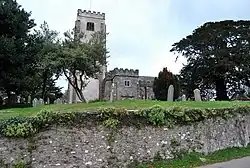 St Mary's Church, in the village, has a rood screen forty-two feet long.[13] Described by Pevsner as "one of the most perfect in Devon", it is unusual in being complete from the north to south walls and also in retaining its original coving, cornice and cresting. The wainscoting has painted figures.[14] The stained-glass windows include a few reset old fragments, but are most notable for the panels by Christopher Whall (1897 and 1908) and by his daughter, Veronica Whall (1926).[14]