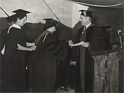 Lutz, however, was unable to push forward her measures after Getúlio Vargas was reinstated as dictator in 1937, which led to a suspension of parliament, and the Statute project.[14] Lutz nonetheless continued her diplomatic career. She was one of the four women to sign the United Nations Charter at the Inter-American Conference of Women held in San Francisco in 1945. She also served as vice president of the Inter-American Commission of Women from 1953 to 1959.[15]