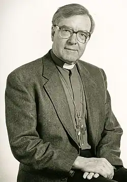 Bertil Werkström was the son of the Gunnar Werkström (1904-1975) and Ingar Hedenskog (1908-1971). He grew up in Dalsland and studied theology at Lund University in 1954. He graduated in 1959. Afterwards he underwent hospitalization in the United States between 1959 and 1960. He became a doctor of theology in 1963 with the dissertation Bekännelse och avlösning. En typologisk undersökning av Luthers, Thurneysens och Buchmans biktuppfattningar (Confession and Relief. A Typological Examination of Lutheran, Thurneysen and Buchman's Concept of Conflict). In 1959 he married Brita Caroli, who died in 2013.[2] During his time as Archbishop he supported ecumenical efforts[3] and in international affairs favored sanctions against Apartheid South Africa.[4] In 1984 he also maintained that homosexuality was "against the orders of creation."[5]