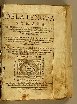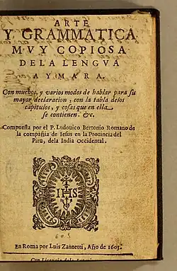 Title page, Arte y grammatica muy copiosa de la lengua aymara, 1603
