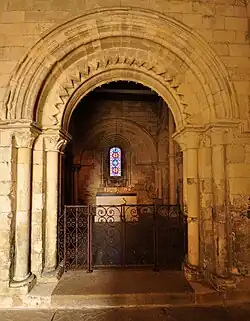 De Criol was a most important figure in King Henry's rule, and appears to have held loyally to him throughout. The records of payments of his salary are numerous in the Rolls, often expressing that they must be paid immediately. His son or near kinsman Nicholas de Crioll was for a time Constable of Dover Castle during the early 1260s. The burial place may have been in Battle Abbey, or possibly in the Premonstratensian abbey of St Radegund at Bradsole, near Dover, an Order of which the de Aubervilles and de Criols were patrons.[143][144] John Leland remarked, "Certen of the Crealles were honorably biried at S. Radegund. Creaulles were greate benefactors to Houses of Religion in Est Kent, as appereth by their Armes in many Glase-Windois."[145] De Criols bore "Or two chevrons and a canton gules", rendered in a 13th-century source as "Bertram de Criol, d'or ove deux chevrons et ung quartier de goules".[146]