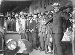Beryl Mills was an entrant in the inaugural Miss Australia contest run by Smith's Newspapers Ltd, owners of Smith’s Weekly and The Guardian.[3][4] After initial success as Miss Westralia, she entered and won the national competition in June 1926 in Sydney.[1] Her winnings included 1000 pounds, two cars, and a promotional tour of the United States.[3][5] She was accompanied by her mother and Sir Frank Packer and was a guest of the Miss America pageant at Atlantic City.[1] Her tour included laying a wreath on the grave of an ANZAC soldier buried in the Presidio Cemetery, a guided tour of University of California Berkeley campus, and a visit to the White House, where she was invited to meet President Calvin Coolidge.[6]