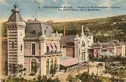 In 1891, the Compagnie des Bains salins de la Mouillère was established,[2] marking the beginning of tourism development around the Besançon-les-Bains attraction. This led to the construction of several notable establishments, including a thermal spa,[3] the Hôtel des Bains,[3] a casino,[3] the Kursaal performance hall,[3] and the opening of a tourist office in May 1896.[4]