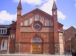 The Bethania Mission House, Esbjerg is located in the centre of Esberg, southwest Denmark. Inspired by Italian architecture, its main gable has a rose window flanked by spires.