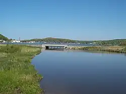 Betsie River emptying into Lake Betsie, Elberta, MI (bridge shown is M-22 crossing the river outlet)