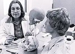 In 1967, anthropologist Dr. Clyde Snow and Gatliff worked at the Federal Aviation Administration in Oklahoma City. Snow recommended that Gatliff learn the techniques described in Wilton M. Krogman's book The Human Skeleton in Forensic Medicine (1962). Snow was able to identify the ancestry, gender and approximate age of a skull, while Gatliff used her art training to create a likeness of a face based on the skull and other scientific information. Working with Snow, Gatliff created a sculpture directly on the skull of an unidentified young man which led to his identification. The success of this early collaboration formed the foundation of the use of facial reconstruction from the skull in the United States. Together they developed the Gatliff/Snow American Tissue Depth Method. This method encompassed the work of other researchers which defines numerous "landmarks" on the skull and determines an average tissue depth for each location.[4] The height of each landmark was determined by tables created by Snow and other forensic anthropologists' research, factoring in age, gender and ancestry. Gatliff drew on ophthalmology, dentistry and cranio-facial anatomy to render her sculptures.[2]
