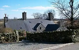Betws Bach farmhouse is a Grade II listed building in the community of Llanystumdwy. The main part of the farmhouse was built in the 17th century (around 1649) and still retains much charm, historic interest and character.[1] The main part of this imposing farmhouse is three storeys and has three inglenook fireplaces. To the rear and north gable an addition was built in the 18th century. The house has a wealth of oak beams and exposed stonework.