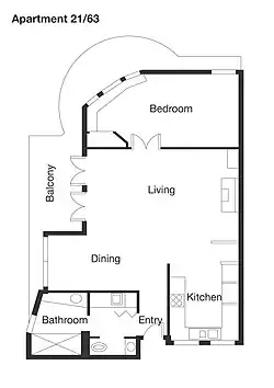 Most apartments are 1 or 2 bedrooms, tightly planned with a small kitchen, and bathroom, with the emphasis being on the living and bedroom spaces. Most apartments maintain a strong visual connection to the outside through balconies, opening to the land along or on upper levels sweeping views north towards the Yarra River and over the flat suburb of Richmond beyond.