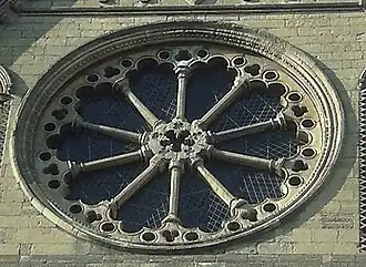 A fire in 1188 seriously damaged the minster and the town. Much of the church was damaged and complete rebuilding was required. Money was collected for the work and reconstruction began at the east end soon after the fire.[7] During the construction, a new lantern tower over the eastern crossing designed to illuminate the shrine of St John was under construction, but it collapsed c. 1219 necessitating a partial rebuild of the church. Henry III granted 40 oaks from Sherwood Forest in 1252, and by c. 1260 the retrochoir, choir, chapter house, transepts, and crossing were complete.[6] Filled with light, overwhelmingly tall and spacious, and speaking to the increasing skills of the stonecarvers, this new work was radically different from the old Saxon and Norman structure it replaced. It was the product of the novel structural systems and artistic development that together define the Gothic style, originating in France and brought to England in the late 12th century.