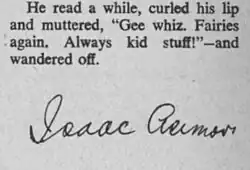 - ^ Asimov's "Kid Stuff" and Dick's "The King of the Elves" appeared in the September 1953 issue: ""Kid Stuff" & "The King of the Elves"". Beyond Fantasy Fiction. 1 (2): 121, 142. September 1953. Bradbury's "The Watchful Poker Chip" appeared in the March 1954 issue: "The Watchful Poker Chip". Beyond Fantasy Fiction. 1 (5): 128. March 1953.. These and more may be found via an online index: "Issue Grid: Beyond Fantasy Fiction". ISFDB. Retrieved March 4, 2017.