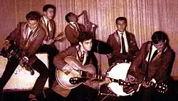 The band had their debut performance at the prestigious Zagreb Music Institute.[2] During the following years, they would continue to occasionally perform there, although they played mostly in Zagreb clubs Medicinar (Medicine Student) and Ribnjak (Fish Pond).[1] They played almost exclusively covers of songs by American rock and roll artists, like Elvis Presley, Bo Diddley and Chuck Berry, in which they differed from other Yugoslav bands of the early 1960s, as other Yugoslav groups of the era often performed covers of popular schlagers.[1] Bezimeni also performed covers of instrumental songs by Johnny and the Hurricanes.[1] The band had one appearance in the Television Zagreb children's show Slavica i Mendo.[2] After spending the summer of 1964 performing in Zadar, Bezimeni ended their activity.[1]