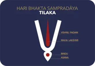The mark on their forehead represents Vaishnavism—a branch of Hinduism. It’s similar to the red dot (bindi) commonly used in India, but this is for a different tradition. All are initiated followers who take additional vows of celibacy and voluntarily take part in all the organization's activities.[38][1]