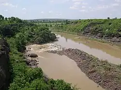 Bhojpur is situated on the Betwā River, 32 km from Bhopal, the state capital of Madhya Pradesh. The site is located on sandstone ridges typical of central India, next to a deep gorge through which the Betwā River flows. Two large dams, constructed of massive hammer-dressed stones, were built in the eleventh century to divert and block the Betwā, creating a large lake. The approximate size of the lake is shown in the site plan given here.