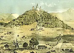 This was the place where British traveller Colonel William Kirkpatrick set up his camp when he visited Kathmandu in 1793 as the envoy of Charles Cornwallis, the governor-general of British India. Kirkpatrick has written in his account of the visit, "Our camp, during the single week we resided in Nepaul, was pitched on a rising but broken spot of ground, close to the east foot of Sumbhoo-nath, and not quite a mile distance from Khatmanda."[9]