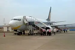 Bhuj is connected to Ahmedabad, Vadodara, Surat Mumbai, Delhi, Kolkata, Pune, Gaziabad, Jaipur, Ajmer, Hapur, Moradabad, Bareilly, Kharagpur, Ujjain and other cities within India by railway. The city has a domestic airport, from which daily flights connect to Mumbai with flights operated by Air India. State Transport buses are available from the ST stand in the middle of the town to various places in Gujarat. Additionally, many private tour operators also run frequent buses to major cities within and outside of the state of Gujarat. Kandla Airport is 53 km from Bhuj. The city may be navigated by the city bus and auto rickshaw.
