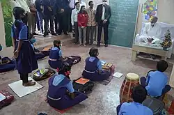 In Chhattisgarh, Swami Atmanand chose to work with locals, specifically young people in the area. He has devoted his time to tribal people and has inspired young people by teaching them about compassion and serving others.[47] To honour his legacy, the Swami Atmanand English Medium School Scheme was introduced. On 1 November 2020, to mark Statehood Day, Chief Minister Bhupesh Baghel unveiled the scheme.[48]