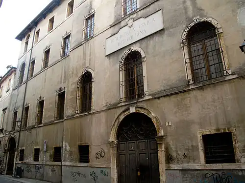 The Biblioteca Civica Bertoliana is a main public library of the municipality of Vicenza, Italy. Inaugurated at the dawn of the 18th-century, and now the third largest library in the Veneto, after the Biblioteca Marciana of Venice and the University of Padua library. The main office is located in the Palazzo San Giacomo, Vicenza.