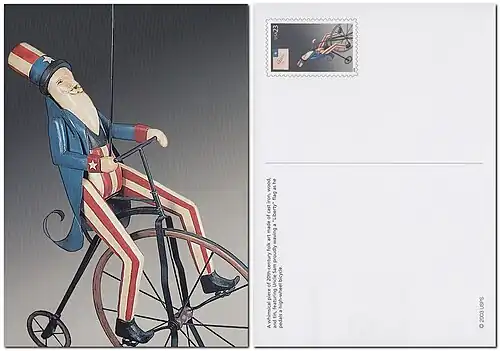 - A postcard depicting a bicycle with a non-bicycle stamp