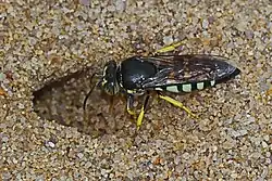 Bicyrtes quadrifasciatus, the four-banded stink bug hunter wasp, is a species of sand wasp in the family Bembicidae. It is found in North America.[1][2][3][4]
