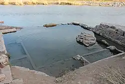 The park has several hot springs, including the springs in the Hot Springs Historic District. The main hot spring is called Hot Springs; it is also known as Bocadillas Hot Springs and Langford Hot Springs. Hot Springs is on the National Register of Historic Places.[36] The hot springs were the first major tourist attraction in the Big Bend area before the national park was established. In 1909, J.O. Langford began developing the springs. There was a small stone soaking tub of local stone from the time before Langford's development was excavated at the site. A dugout shelter existed at the site that the Langford family renovated as a residence. The Langfords then constructed an adobe house, a stone bathhouse, and bathing shelters made of brushwood. Later in 1927 they rebuilt the bathhouse and built a store and a motor court with seven attached cabins.[37]