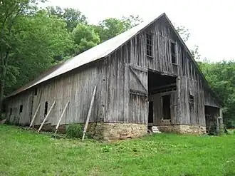 The Big Buffalo Valley Historic District, also known as the Boxley Valley Historic District, is notable as a cultural landscape in Buffalo National River. It comprises the Boxley Valley in northern Arkansas, near the town of Ponca. The valley includes a number of family-operated farms, primarily dating between 1870 and 1930. The farms are situated on either side of the road that parallels the river, Highway 43. Many of these farms are still operated by the descendants of the original homesteaders. However, of fifty residences in the valley, thirty were vacant in 1987, at the time of historic designation.[2][3]