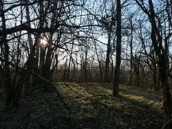 After the Indians left, a farmer plowed much of the clearing at Big Indian Farm.[23] For decades curio-hunters dug in the burial mounds.[24] But much of the surrounding area, including Little Indian Farm, remains largely as the Indians left it a hundred years ago. You can still see the burial mounds, the outlines of cabins, a hint of the dance ring, and in the surrounding woods you may run across man-made mounds which must have been garden beds.
