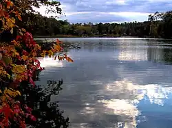 The community of Loyston (initially known as Loy's Crossroads), now under the lake just north of the park, was established by John Loy in the early 19th century.[8] The Loy and Sharp families both operated iron furnaces using ore mined along Big Ridge, creating mostly tools and household items.[9] By the early 20th century, Loyston had grown into a regional trading center for the Big Ridge area.[10]