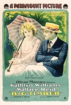 Big Timber is a 1917 American silent film Northwoods/drama produced by the Oliver Morosco Company and distributed by Paramount Pictures. It was directed by William Desmond Taylor and starred Kathlyn Williams and Wallace Reid.[1][2] It is not known whether the film currently survives,[1] and it may be a lost film.[3]