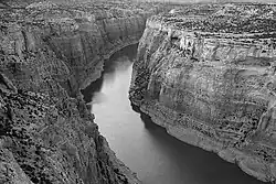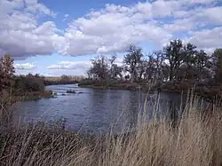 The Bighorn River has also been known as the Great Horn River, Le Corne[2] and Iisaxpúatahcheeaashisee in the Apsáalooke language which translates to English as Large Bighorn Sheep River.[5] Its Gros Ventre name is ʔɔ́tééíníícááh, 'wild sheep river'.[6] Its Lakota name is Héčhiŋškayapi Wakpá, ‘Bighorn River’.
