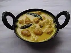 Dishes for which Bihar is famous include Litti (cuisine), Chokha, Kadhi bari, Ghugni, Khichdi, Bihari kebabs, Champaran meat, Machhak Jhor (fish curry), Makhana. Famous native sweets includes halwa of posta-dana and Makhana, Khaja, Tilkut and Anarasa.