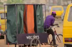 In 2012, she co-founded Wecyclers, a company that collects recyclable rubbish from households in Lagos. When the business started, Adebiyi would take out a tricycle to do collections to find out more about her new business.[9] Once the rubbish is sorted, her company sends a SMS back to the household, informing them of how many points they have earned for trading in the rubbish.[10] These points can be converted for food, cleaning products, or cellphone minutes.[11] The company works in partnership with the Lagos Waste Management Authority. Lagos produces 9,000 tons of waste per day and the authority was trying to double the proportion that was recycled from the 18% figure in 2011.[10] The Nigerian economy is one of the largest economies in Africa, but the disorganisation in Lagos means that rubbish cannot always be collected. Wecyclers use modified tricycles that enable the collection of rubbish from places where normal vehicles cannot reach,[8] gathering waste from thousands of households. The company's estimate in October 2015 is that it has collected over 500 tons of rubbish, it has created value from that rubbish and has employed 80 people.[8]