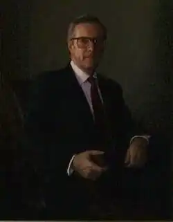 The official portrait of William E. Brock hangs in the Department of Labor