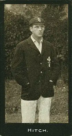 A Lancastrian, Hitch was bowling for a club in Cambridgeshire when he was spotted by Surrey's batsman Tom Hayward and recommended to The Oval. From his debut in 1907, he quickly established himself as one of the fastest bowlers in first-class cricket, and his rumbustious lower-order batting and general enthusiasm made him a favourite with the crowds. In 1908 he took 58 wickets including 13 in a remarkably heavy win against Kent at the Oval, but it was not until the latter part of 1910 that Hitch entered the public eye. His aggressive hitting brought him such innings as 74 against Middlesex on a difficult wicket, whilst at Northampton he made 54 and took 9 for 101 - bowling unchanged with Razor Smith throughout both innings apart from one over. However, it was Hitch's brilliant close catching that garnered the critics' attention and helped Smith to a bag of wickets unrivalled for Surrey except by Tom Richardson in his great days between 1893 and 1897.