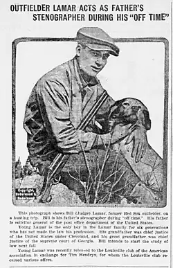 William Harmong Lamar [Good Time Bill] (March 21, 1897 – May 24, 1970) was a left fielder in Major League Baseball who played from 1917 through 1927 for the New York Yankees, Boston Red Sox, Brooklyn Robins, and Philadelphia Athletics. Listed at 6 ft 1 in (1.85 m), 185 lb., Lamar batted left-handed and threw right-handed. He was born in Rockville, Maryland.