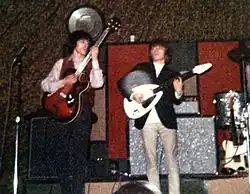 Wyman was close to Brian Jones; they usually shared rooms while on tour and often went to clubs together.[18] He and Jones spent time together even when Jones was distancing himself from the band. Wyman was distraught when he heard the news of Jones' death, being one of two members (Watts was the other) to attend Jones' funeral in July 1969. Wyman was also friends with guitarist Mick Taylor. Like the other Rolling Stones, he has worked with Taylor since the latter's departure from the band in 1974.[19]