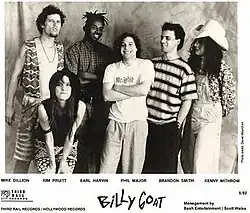 ![]() Billy Goat, 1992. L-R: Mike Dillon, Kim Pruitt, Earl Harvin, Phil Major, Brandon Smith and Kenny Withrow. | |