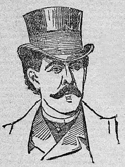 Reports of Billy McGlory's early life differ. Popular legend has it that he was born in the slums of the Five Points and grew up in an atmosphere of vice and crime, prior to the reform efforts of Reverend Lewis Pease and the Five Points House of Industry during the mid-1850s. Contemporary reports says he was born and raised in the Sixteenth Ward (bounded by West 14th Street, the Hudson River, West 26th Street and Sixth Avenue), specifically on 16th Street between 6th and Seventh Avenues, by respectable Irish parents.[1][2] Billy's half-brother by his mother's first marriage, Johnny Thompson, was a well-known Bowery actor.[2] It is likely that as a young man he was a member of both the Forty Thieves and the Chichesters.[3] Former New York City Chief of Police George W. Walling described him in his memoirs as "a man out of whom forty devils might be cast were it possible to get at him".[4][5] One of the first saloons he ever opened, known as the Burnt Rag, was located in the basement of 50 Bleecker Street.[6] Only 200 feet away from police headquarters, the so-called "notorious thieves' den" was subject to frequent police raids.[6][7] In 1878, he operated Eagle Hall, also known as the Burnt Rag at 6 Rivington Street.[8] By September 1878, he was running another drinking place known as Burnt Rag No. 2, or the Windsor Palace, out of 103 Bowery, formerly occupied by Owen Geoghegan.[9] Geoghegan relocated his saloon to 105 Bowery that same year.[10]