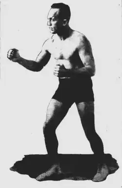 As of November 1917 he was serving as a sapper in Belgium,[15] and boxed against fellow soldiers while on active service there.[16] As of 1918 he was in France and serving on the physical training staff of a convalescent camp,[17] and wrestled in a competition between Australian, American, Canadian, English, and Belgian soldiers in 1918,[18] and judged a boxing competition in 1919.[19] During his time deployed in France he had eighteen boxing matches winning seventeen and drawing one and defeated former French wrestling champion M. Pernin in a wrestling match.[8]
