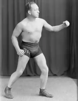 In 1903 he enrolled in the wrestling school of Weber and Rice.[1] In 1907 he began cycling professionally, however in 1910 he decided he wished to compete in amateur events and was required to stand down from athletic competitions for one year in order to qualify for them.[7] He began competing in amateur wrestling after his hiatus and became the Australian middleweight champion,[1] holding the title from 1912 to 1914.[8] He began his professional wrestling career in 1915 wrestling on an athletic program in April that year at a Melbourne event held to raise money for Belgium.[8][9] He wrestled again in October on a Police Charity Carnival program.[10]