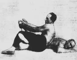 In January 1922 Meeske had a jiu-jitsu match against Billy McGarvey.[26] Professional wrestling was described as having almost lapsed out of existence in Australia as of 1922, and in late January the company Country Stadiums Ltd. moved to reinvigorate the sport organizing for Meeske to wrestle Billy Kopsch under their auspices in March.[27] Victorian wrestler, Bert Potts, challenged Meeske for the Australian championship before Meeske had wrestled Kopsch.[28] As the scheduled date approached Meeske delayed the match by a fortnight,[29] but by April it had still not taken place, with Kopsch stating he had not heard any news regarding it.[30] As of July 1922 Meeske was still claiming the heavyweight championship and giving wrestling demonstrations with Billy Tonkin,[31] and in July he issued a challenge claiming he was able to throw any twelve wrestlers in Australia within an hour.[32]