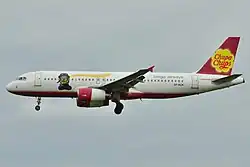 Bingo Airways was well known for the smiley face and bright red nose on the front of its aircraft. One of Bingo's A320-200s, registered SP-ACK, was in a special livery of the Chupa Chups.[3]