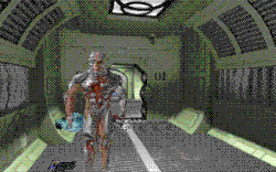 BioForge uses a software-only 3D engine to draw polygonal objects and characters against pre-rendered backdrops with a fixed resolution of 320x200 pixels in 256 colors.