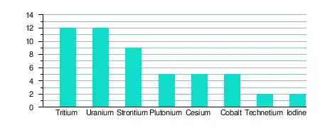 In ocean waters, the presence of tritium (3H), cesium-137 (137Cs), strontium-90 (90Sr), plutonium-239 (239Pu) and plutonium-240 (240Pu) has significantly increased due to anthropogenic causes.[10][11] In soils, technetium-99 (99Tc), carbon-14, strontium-90, cobalt-60 (60Co), iodine-129 (129I), iodine-131 (131I), americium-241 (241Am), neptunium-237 (237Np) and various forms of radioactive plutonium and uranium are the most common radionuclides.[2][8][9]
